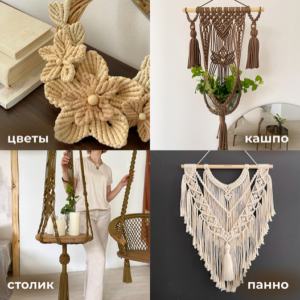 [macrame_set] Сумочка-авоська с плетеной круглой корзиной [Елена Иванова]