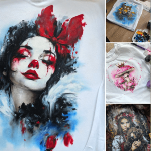 [Роспись по ткани] Девушка с медведем, розовые мухоморы, тигр с уточками [Даша Лисенкова]