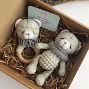[Toys_knit_anny] Тактильный мишка и погремушка [Анна Борисова]