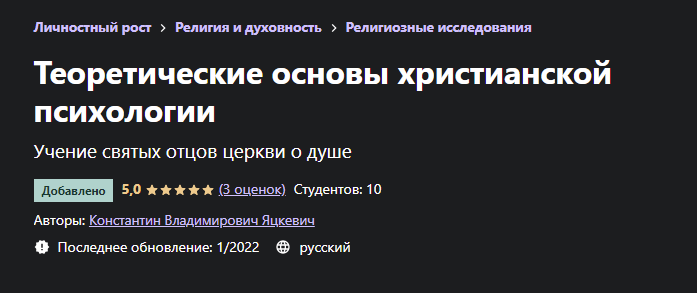 [Udemy] Теоретические основы христианской психологии [Константин Яцкевич]