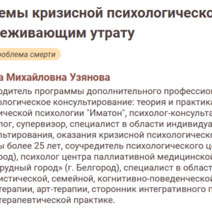 [Иматон] Методы и приемы кризисной психологической помощи клиентам, переживающим утрату [Ирина Узянова]