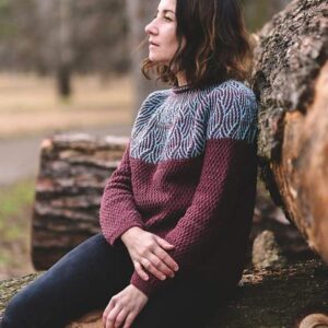 [Вяжи.ру] Унисекс пуловер с жаккардовой кокеткой Foliage [Anna Johanna]