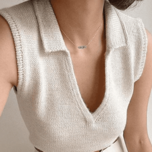 [Вяжи.ру] Стильный топ с воротничком поло вязаный спицами Amy