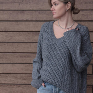 [Вяжи.ру] Кашемировый свитер-оверсайз с японским плечом Boston, вязаный спицами сверху [Magdalena Parker]