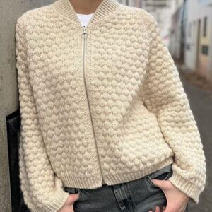 [Вяжи.ру] Стильный бомбер рельефным узором спицами Hilly [Gudrun Fesl]
