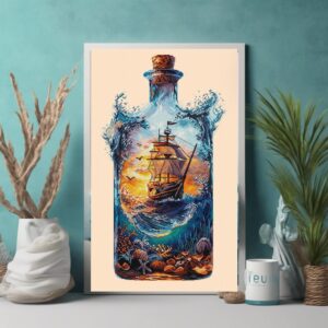 Морской парусник в бутылке Схема для вышивки крестом Красочный ловец ветра [yermakova.cross_stitch]