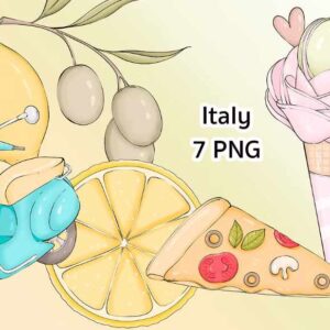 [Palmpink Illustrations] Набор иллюстраций Италия Клип-арт [Дарья Львова]