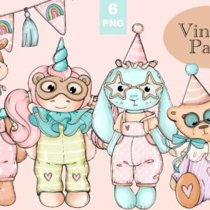 [Palmpink Illustrations] Винтажные плюшевые игрушки Клип-арт [Дарья Львова]