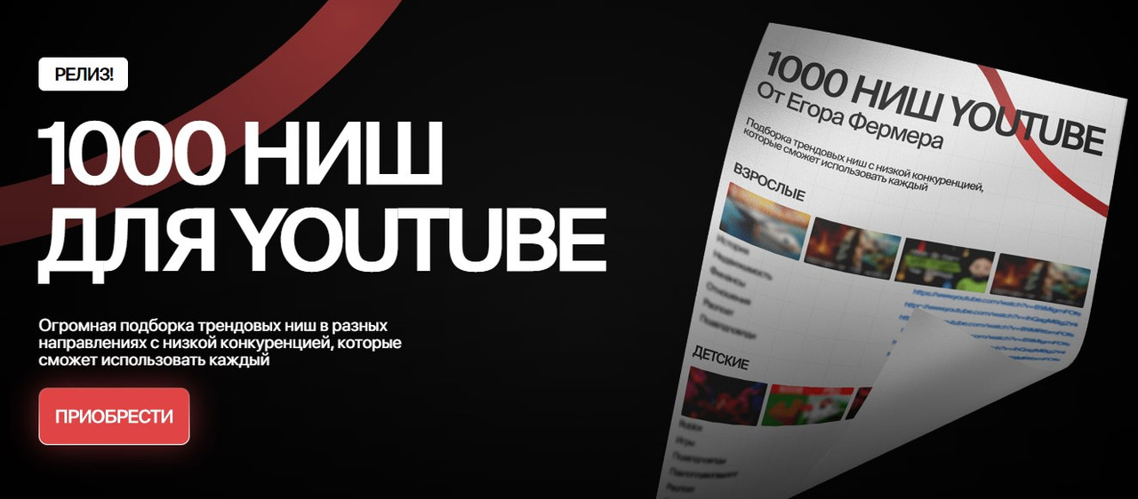 1000 ниш для Youtube [Егор Фермер]
