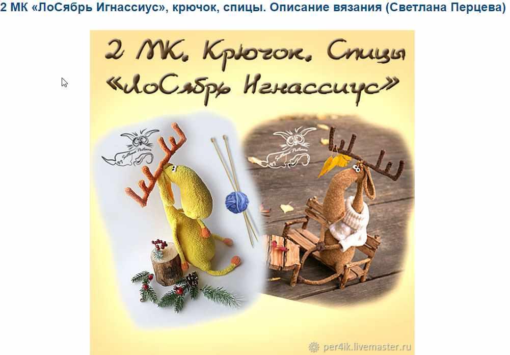 2 Мастер класса ЛоСябрь Игнассиус, крючок, спицы. Описание вязания [Светлана Перцева]