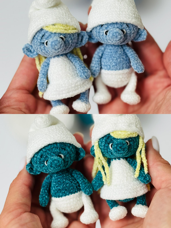 С помощью данного мастер-класса можно связать два сказочных героя — Смурфа и Смурфетту