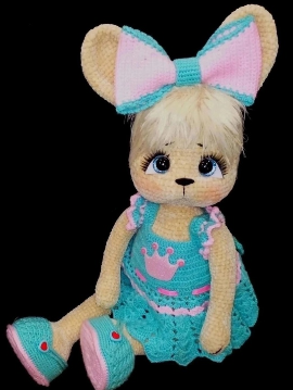 Данный мастер класс не содержит уроков по вязанию крючком. Крепление волос в МК не входит. Необходимые материалы Для тела игрушки – пряжа ДАВНИЛ АРИАНА (велюр) – артикул В4-03 Для одежды – пряжа ALIZE HAPPY BABY- тон 376 и 185 Для волос – пряжа LANOSO SINGLE- тон 995 1. Пряжа основного цвета – 250 г ( 170 м в 100 г ) 2. Пряжа дополнительных цветов – розовый 30 г , бирюза – 100 г 3. Для волос – 5 -10 м 4. Крючок под вашу пряжу – у меня 2.5 мм и 1.5 мм 5. Прозрачный клей – у меня МОМЕНТ КРИСТАЛЛ 6. Белый фетр и ресницы 7. Глазки голубые – диаметр 16 мм 8. Твердый пластик или картон для стелек 9. Четыре одинаковые пуговицы в тон одежды 10. Атласная розовая лента – 1 см- примерно 1 м 11. Любые декоративные элементы для украшения платья 12. Черная тонкая нить – для бровей и носика 13. Любой наполнитель для игрушек 14. Тени для век или румяна