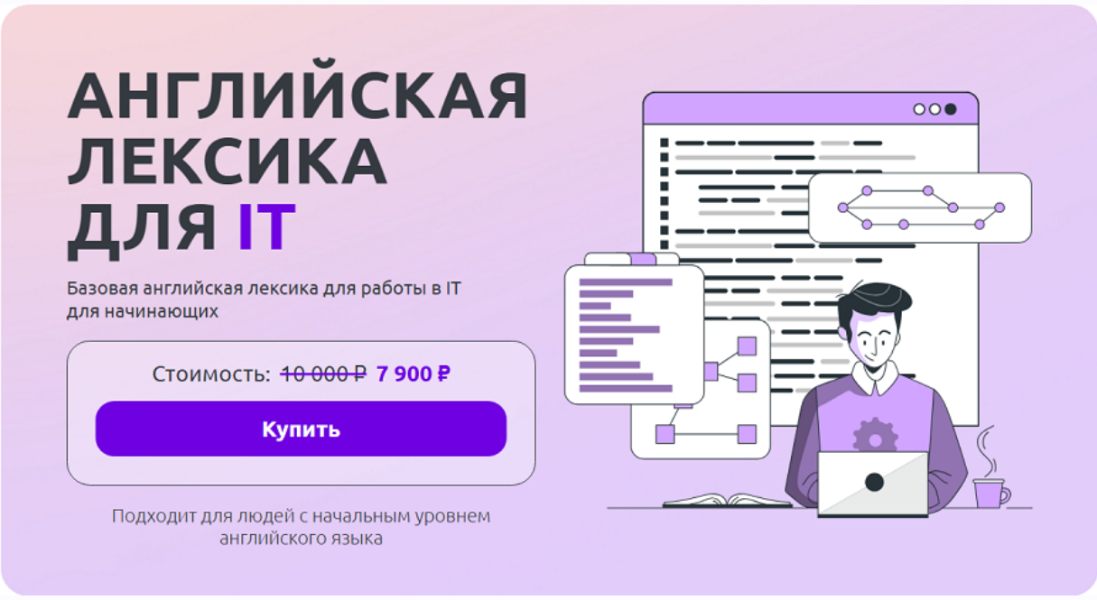 Наш курс поможет вам легко запомнить и научиться применять английскую IT-лексику.