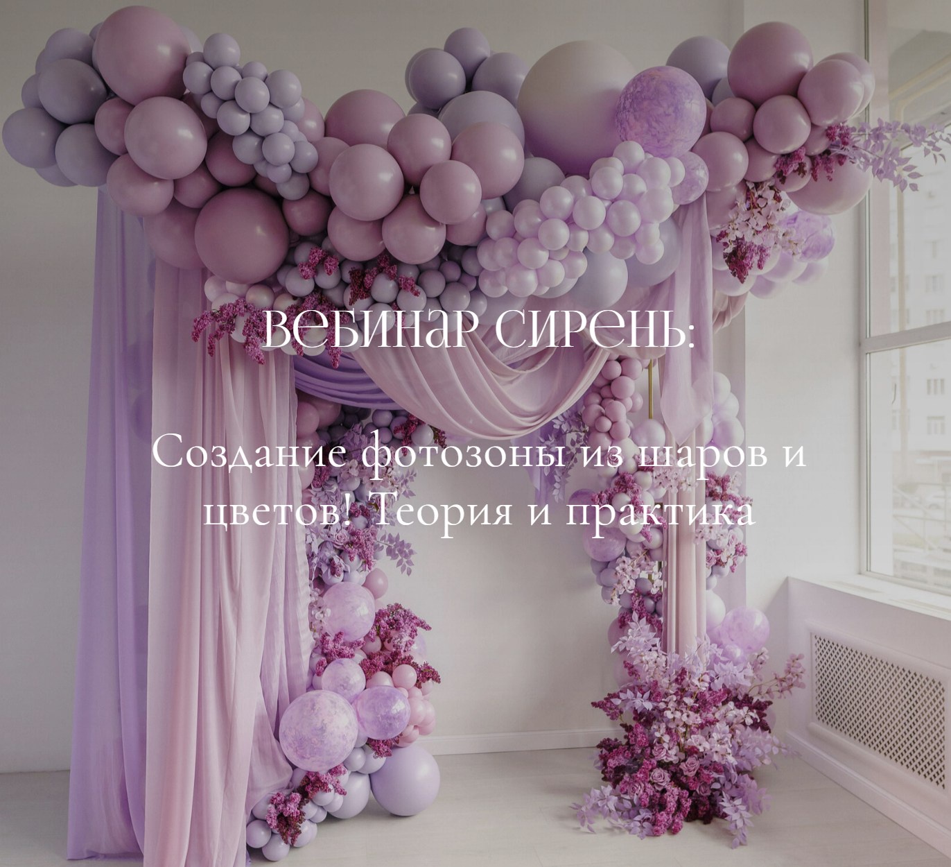 Хотите научиться создавать роскошные и романтичные фотозоны, которые выглядят как настоящий цветущий сад? Присоединяйтесь к вебинару «Сирень: Создание фотозоны из шаров и цветов» с Айрин Шевцовой.