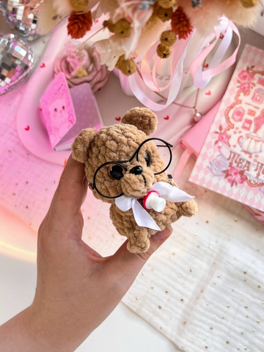 Мишку можно связать с шахматной доской из смеси для лепки, в мастер-классе есть подробное видео. Но Вы также можете добавить свое оформление, готовые подвески и украшения