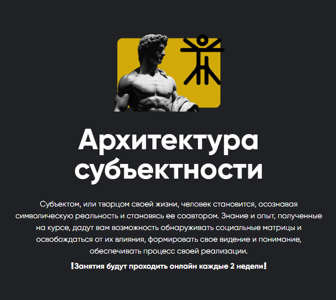 Курс «Архитектура субъектности» — это не просто набор теоретических знаний. Это практическое руководство к действию, которое помогает участникам осознать и развить свою субъектность, научиться формировать и управлять собственной реальностью, а также влиять на окружающих через осознание, понимание и видение. Эти навыки становятся неоценимыми для личностного роста и профессионального успеха.