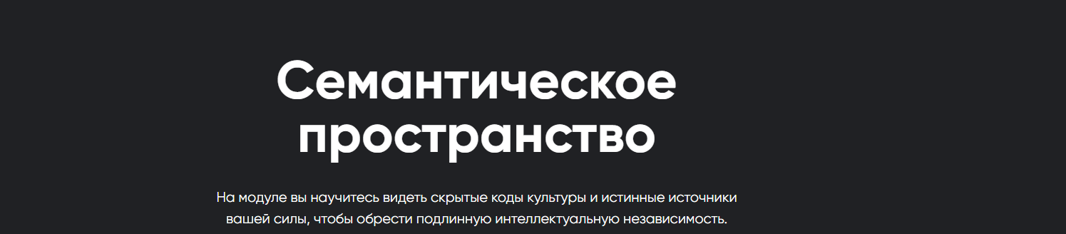 «Семантическое пространство» — ключевой модуль, полностью практический и реально меняющий жизнь. Сюда приходят только самые смелые — те, кто готов встретиться с собой и миром лицом к лицу, без иллюзий и прикрас.