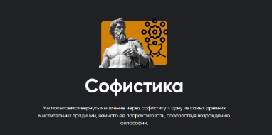 Мы попытаемся вернуть мышление через софистику — одну из самых древних мыслительных традиций, немного ее попрактиковать, способствуя возрождению философии.