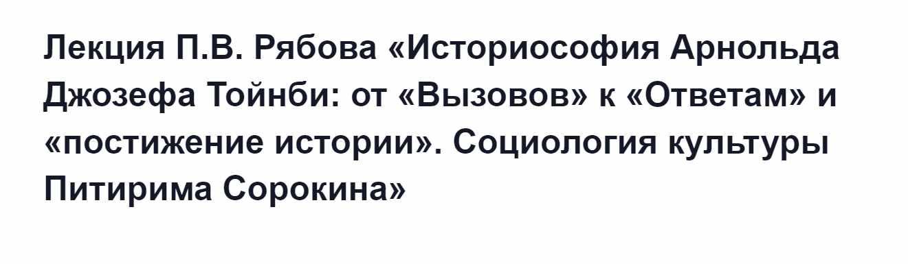 [Архэ] Историософия Арнольда Джозефа Тойнби: от Вызовов к Ответам и постижение истории. Социология культуры Питирима Сорокина [Петр Рябов]