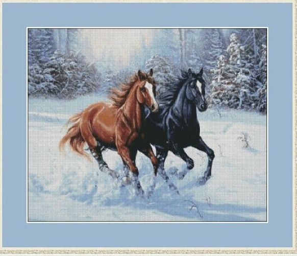 [Авторские схемы для вышивки] Кони в зимнем лесу [Ирина Сумарокова]