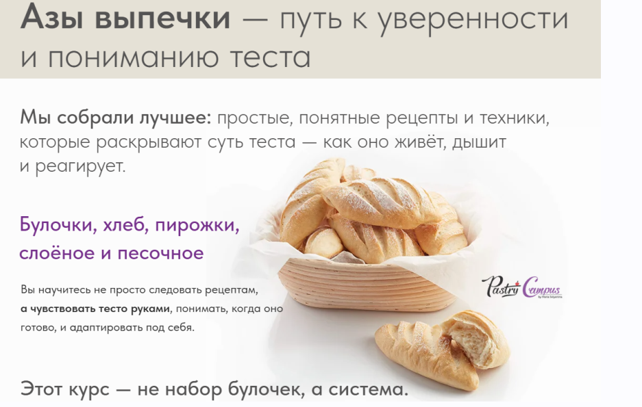 Курс «Азы выпечки» от Марии Селяниной — это 8 недель практики, пошаговые техники, проверенные рецепты и поддержка на каждом этапе.