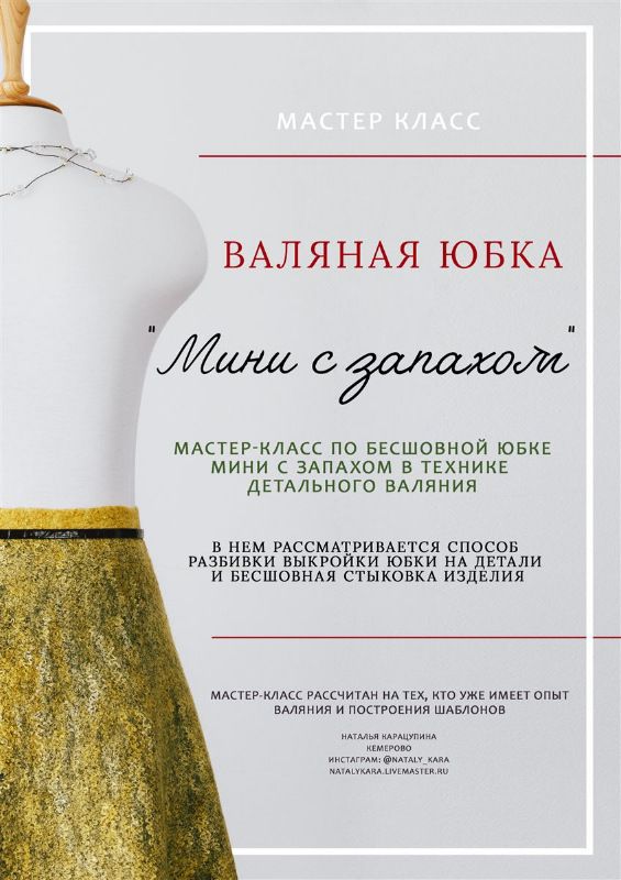 — МК “Бесшовная мини-юбка с запахом в технике детального валяния” с выкройкой 46-48 р-р. Формат pdf.