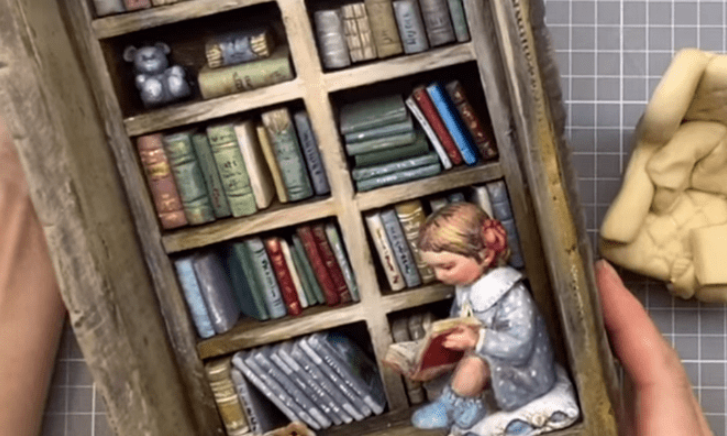 Это будет вставка на книжную полку(при желании можно сделать и ключницу , будут разные варианты ). Мы слепим мир, где царят покой и тишина, где есть место сказкам и приключениям, надеждам и мечтам. Во время создания цена будет 2000 рублей с доступом навсегда. После завершения намного дороже.