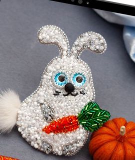 Вышиваем брошь милого глазастого кролика с морковкой