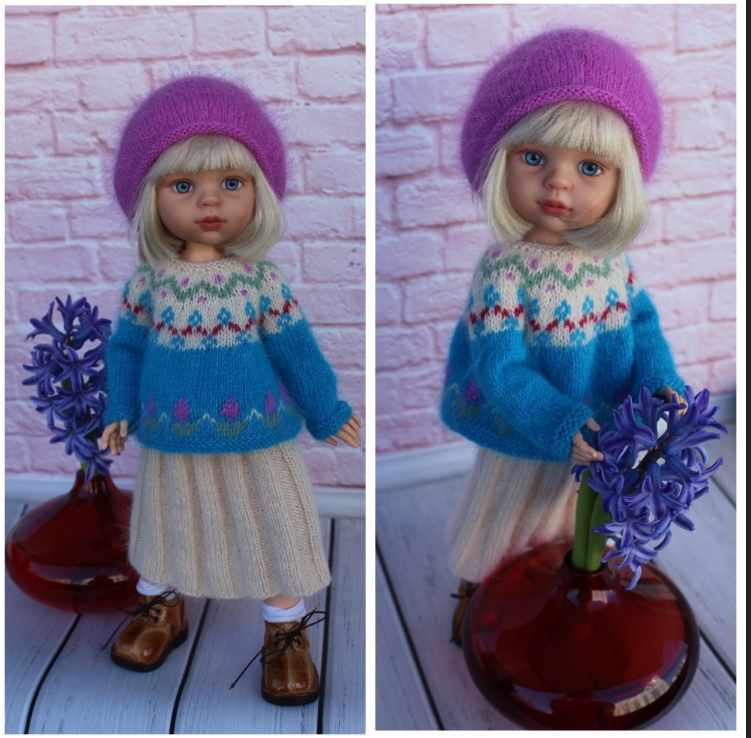 Кофточка полностью распашная сзади, на круглой кокетке с жаккардовым узором, юбочка в резинку 4х4 и маааленький прелестный беретик! Нам потребуются: Пряжа-Пух норки- 90% пух норки, 10% ПЭ, 350м/50г Из Китайского Пуха норки я вяжу в одну нить и без доп.нити спицы-1.25, чулочные Подробные, порядные, попетельные описания, сопровождающиеся фото промежуточных этапов. Жаккард расписан подробно попетельно, порядно. Описание рассчитано на самостоятельную работу. Поддержка автора не входит в стоимость описания.