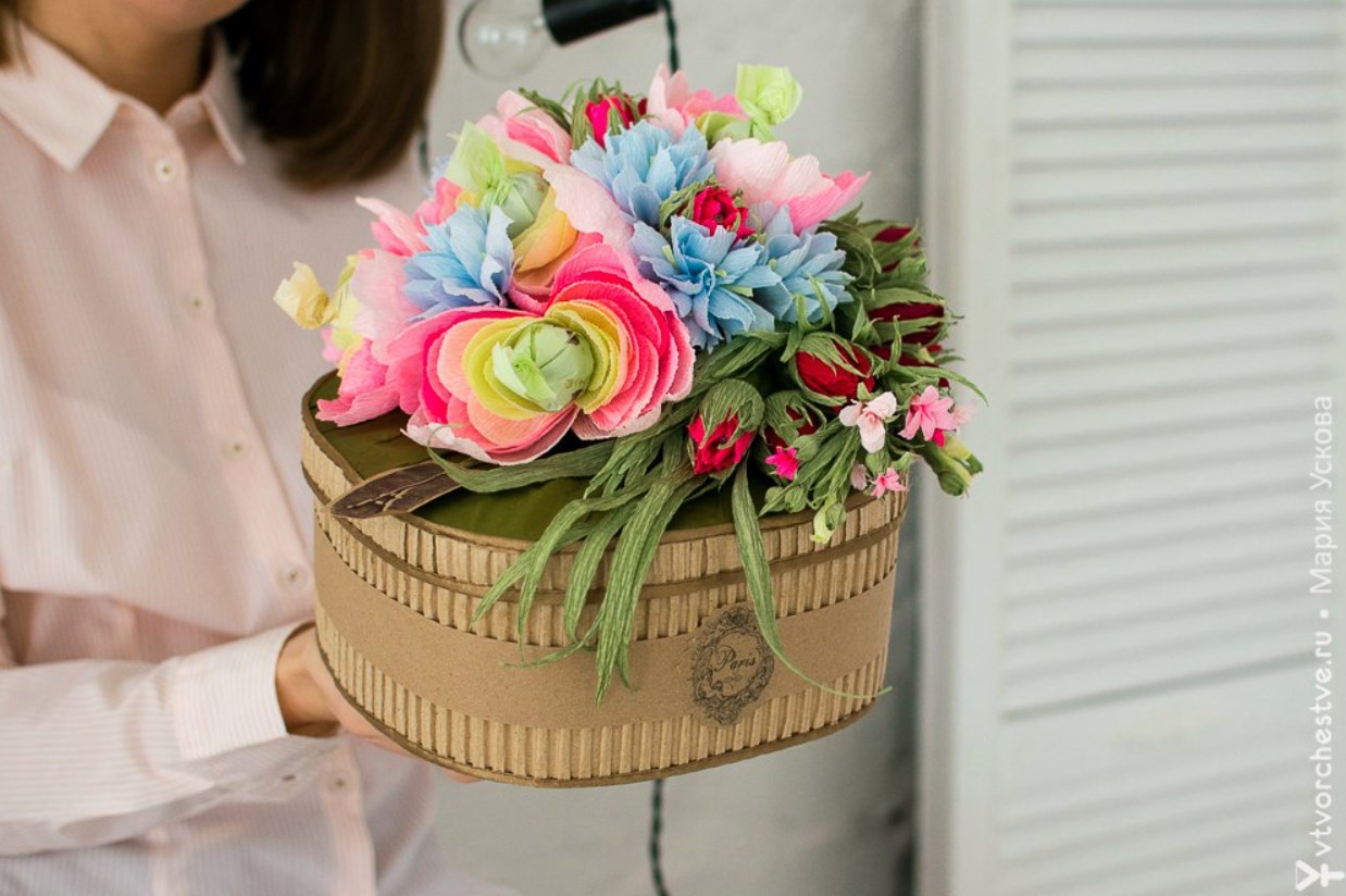 Рада познакомить вас с авторским курсом по букетам из конфет «Парижские улочки». Французы не привыкли экономить на цветах! Кустовая роза, бегония, гортензия, цветы и веточки тимьяна — мы создадим и соберем подарочный ансамбль из трех предметов!