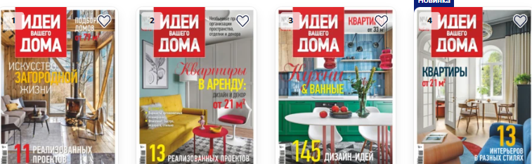 Журнал «Идеи Вашего Дома» – ведущее российское издание по вопросам ремонта и обустройства интерьера – выходит с 1997 года. Читатели журнала – это, прежде всего, люди со средним и выше среднего уровнем достатка, планирующие реконструкцию, ремонт, дизайн интерьера своего жилья с привлечением квалифицированных специалистов. Журнал «Идеи Вашего Дома» предлагает большое количество планировочных и оформительских решений, обзоры ремонтно-строительных материалов, мебели, техники и оборудования. Читатель найдет в журнале достоверную и независимую информацию о новых товарах и услугах, современных материалах и известных торговых марках.