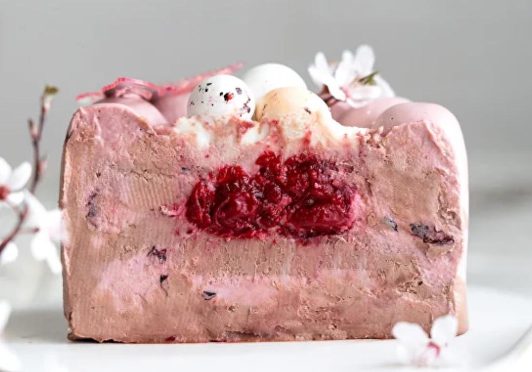 Нежная нетворожная пасха с яркой вишнёвой начинкой внутри без белого сахара, глютена и молочных продуктов.