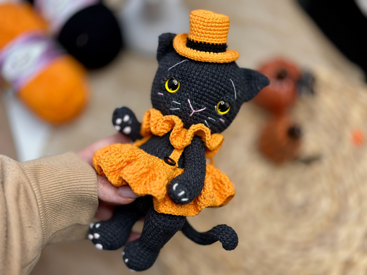 В Мастер-класс входит описание вязания кошечки,платья и цилиндра.