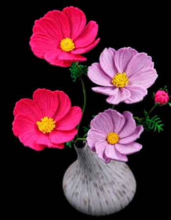 Вязание крючком для цветка Космос. Этот красивый элегантный цветок является популярным цветочным декором и прекрасным выбором для аранжировок и декора, как первичного, так и вторичного цветка.