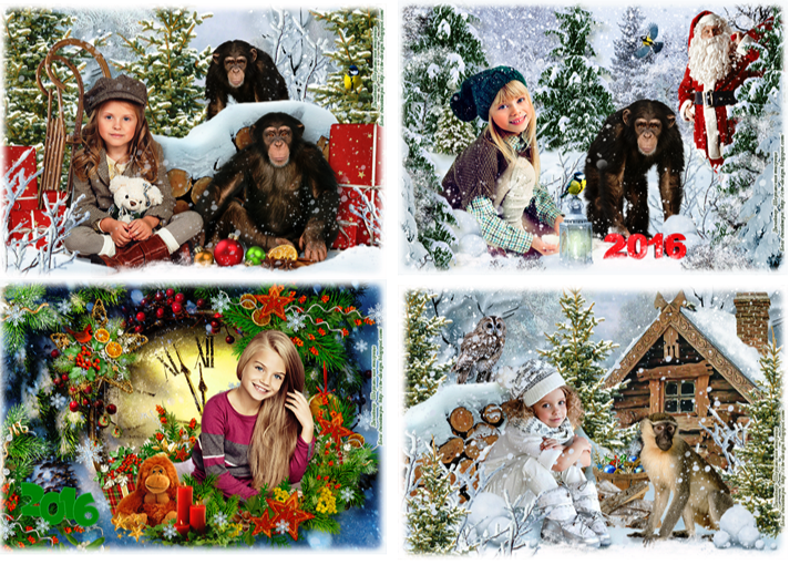 [ctw-design.blogspot] Зимние коллажи для детей с обезьянами, ноябрь 2015