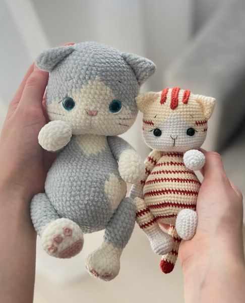 Это МК в форматер pdf с очень подробными фото процесса и описанием. Чтобы вы смогли создать своей невероятных котят. Рост котика маленького стоя 17 см. Рост большого — 23 см. Техника выполнения: вязание крючком Крепление ручек и ножек — нитяное ОТДЕЛЬНО вы можете приобрести одежду, специально созданную под размеры и формы котика!