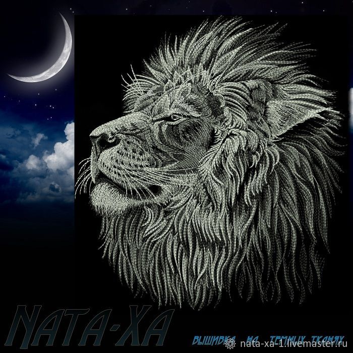 Дизайн машинной вышивки В ночи — лев [Наталья Шестакова]
