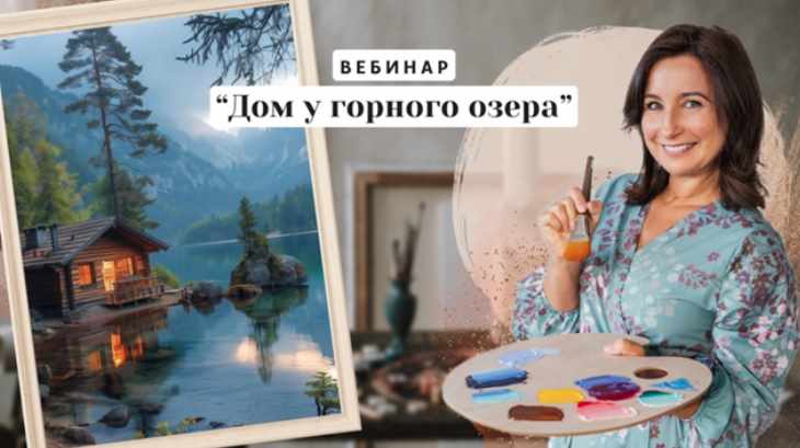 В понедельник мы начинаем писать пейзаж, в котором соединяются величие гор и очарование вечернего света. Озеро отражает вершины, словно зеркало между небом и землёй. Вдали виднеются линии хребтов, а в доме у воды уже зажёгся тёплый свет — как приглашение к отдыху.