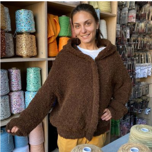 Для кого: описание подойдет смелому хомяку, который уже освоил базовые навыки и готов покорять новые вершины. Также справится и неаккуратный хомяк, так как букле – удивительная пряжа, простит и скроет любую ошибку при вязании)