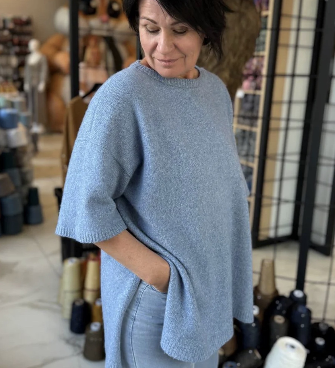 В представленной футболке отражены уют и простота. Хороший оверсайз, широкие рукава, высокие разрезы, удлиненная спинка делают образ современным, а изделие комфортным.