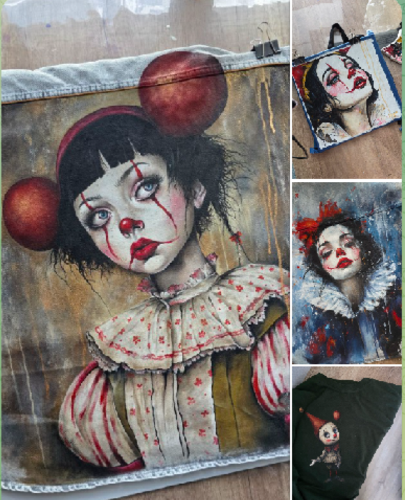 даша лисенкова, клоунесса, пиноккио, роспись по ткани