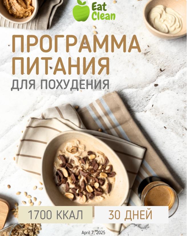 [Eatclean_menu] Новая Программа питания 1700 ккал на 30 дней 2025