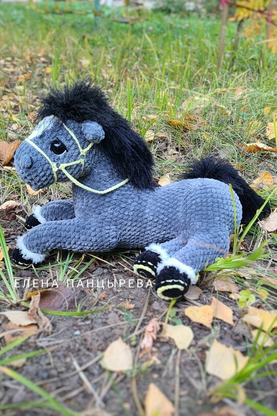 Цельновязанная игрушка! Пришиваем только гриву и хвост.