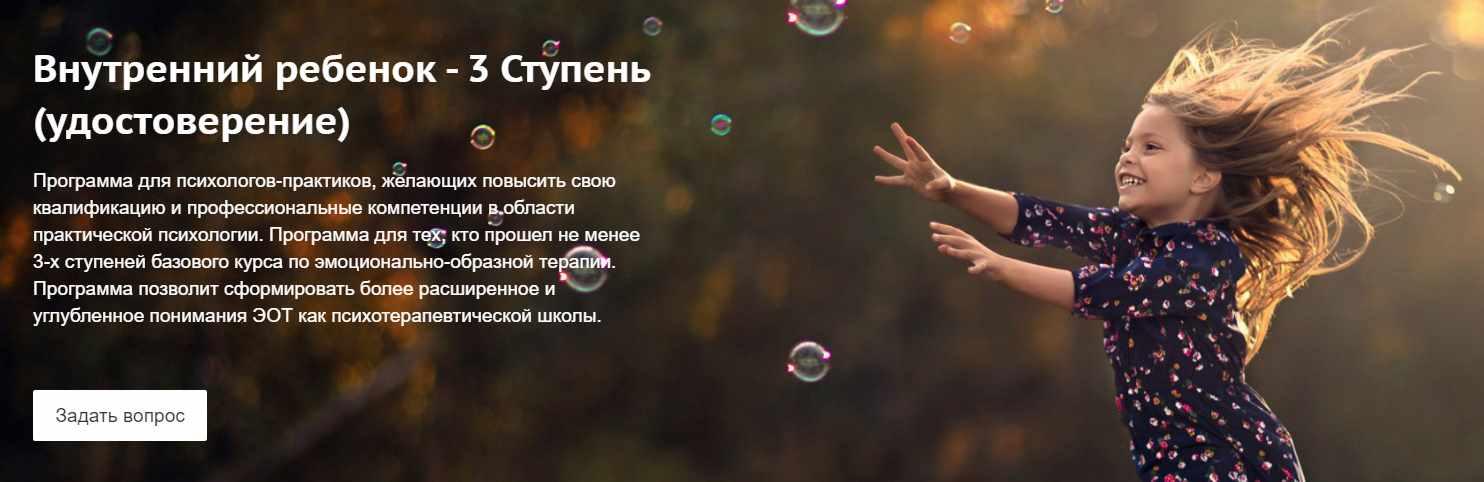 Программа «Психологические модели Саботажного Я в структуре Внутреннего Ребенка. Психологические модели Внутреннего Спасателя. Особенности, приемы работы в эмоционально-образной терапии» (3 Ступень)