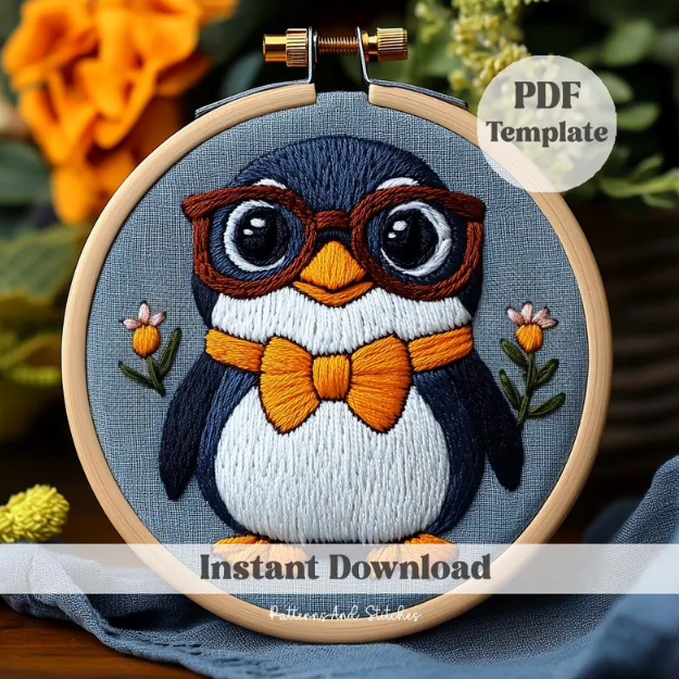 Эскиз вышивка гладью Пингвин в очках [Karla]