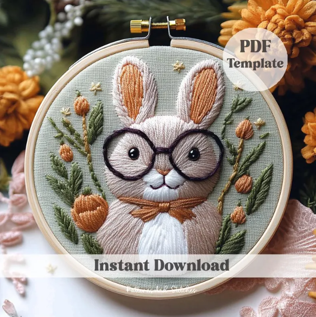 Эскиз вышивка гладью Заяц в очках [Karla]