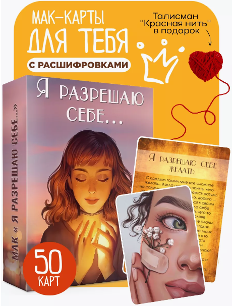 Бонусом с картами покупатель получает талисман Красная нить желаний, доступ к обучающим материалам, техникам и видео по теме Метафорические карты МАК, полезные новичкам в процессе обучения и профессионалам для освоения новых техник, матрицы раскладов для наглядной работы с картами и упрощения анализа расклада. Для быстрого освоения работы с колодой в комплекте с МАК картами идет инструкция на русском языке с 6 техниками работы. Карты подходят для самостоятельного использования женщинами. Колоду МАК используют наставники, эзотерики и игропрактики для проведения сеансов, онлайн сессий, вебинаров, женских практик и трансформационных игр с клиентами: для помощи в принятии решений, поиске пути к своему истинному Я, самопознания и развития, выхода из сложной ситуации, личностного роста, устранения тревожности связанной с недостатком свободы, подсказкой от вселенной. Метафорические открытки для девушек сочетаются с раскладами на гадальных картах Таро Уэйта, Манара, Оракул или Ленорман.