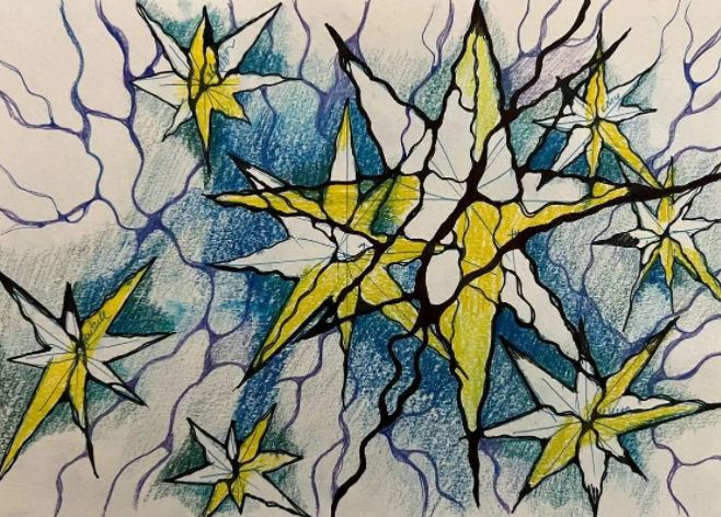 Мы вместе выберем несколько самых крупных ваших целей и прорисуем их в нейрографическом рисунке в виде звёзд, которые зажигаются на тёмно-синем небосклоне — чтобы проявить их, напитать энергией, развивать и приближать их исполнение.