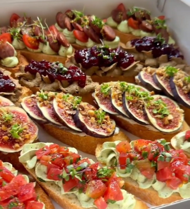 — подробное содержание с разбивкой на мясные, рыбные и с морепродуктами, овощные и фруктовые брускетты;