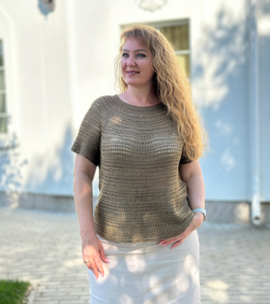 Мастер-Класс по вязанию летней футболки крючком Античное золото.